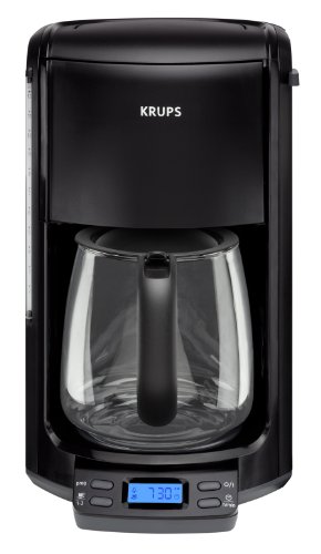 KRUPS FME214 Programmable Coffee Maker with Glass Carafe and LED Control Panel, 12-cup, Black