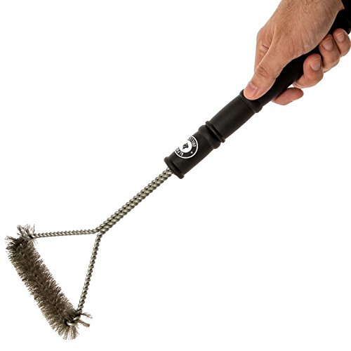 There are various sizes and types of grilling brushes available. Some are made from bamboo while others are strictly metal brushes. The type of grill brush you will need will depend on whether your grill is charcoal or gas. This grill brush has stainless steel brushes and is safe for all grill types, is heavy duty and long lasting and has an optimal handle length of 18".